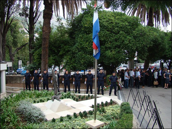 Položeni su vijenci ispred središnjeg križa na gradskom groblju Boninovo, na grobove poginulih pripadnika policije te kod spomenika poginulim pripadnicima Policijske uprave ispred zgrade Policijske uprave.