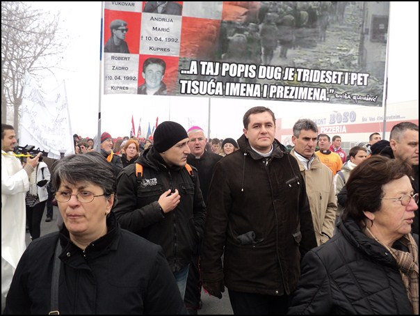 Hladnoća štipa za uši,obraze, a na svakom koraku uspomene što podsjerća na te crne dane, stežu te u prsima oko srca. Pa ni danas nakon dvadeset godina zločinci ne miruju ili njihovo proklijalo sjeme na našim oranicama gdje uživaju sve blagodati ovog društva, iako to nisu zaslužili, ponovno provociraju omalovažujući svete žrtve našeg grada heroja. Kao i mnogi drugi pitam se do kada? Ispred hodočasnika Ante Vulić.